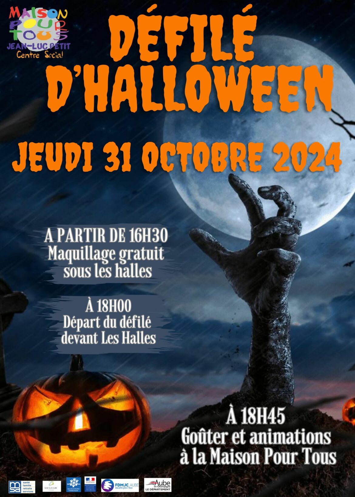 La Maison Pour Tous Centre Social Jean Luc PETIT de Bar Sur Aube organise son traditionnel défilé d’halloween le jeudi 31 octobre 2024 à Bar-sur-Aube.
